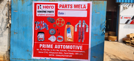 Established in 2019, Prime Automotive is the exclusive distributor of Hero MotoCorp spare parts for the Puducherry region.